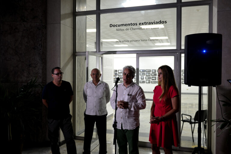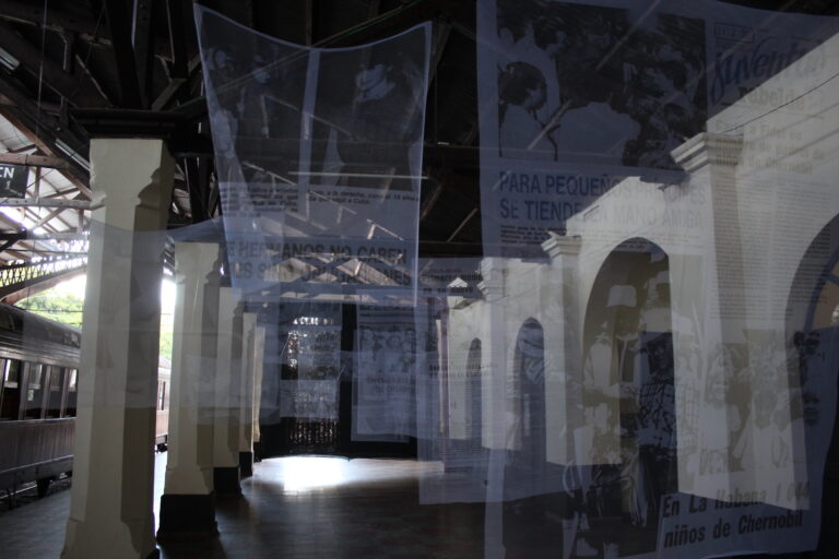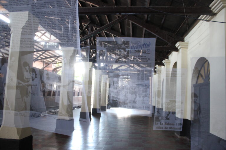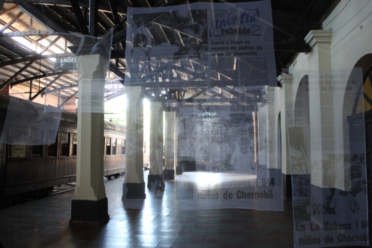 artista peruana Sonia Cunliffe basada en la investigación de la periodista cubana Maribel Acosta. El desastre nuclear de Chernobil, cercano al descalabro de la Unión Soviética y del socialismo del Este Europeo contrastan frente al hecho de gran trascendencia humana que fue la asistencia médica brindada en Cuba durante dos décadas a más de 26 mil niños afectados por esa tragedia, en medio de la crisis económica más profunda vivida en la Isla.
